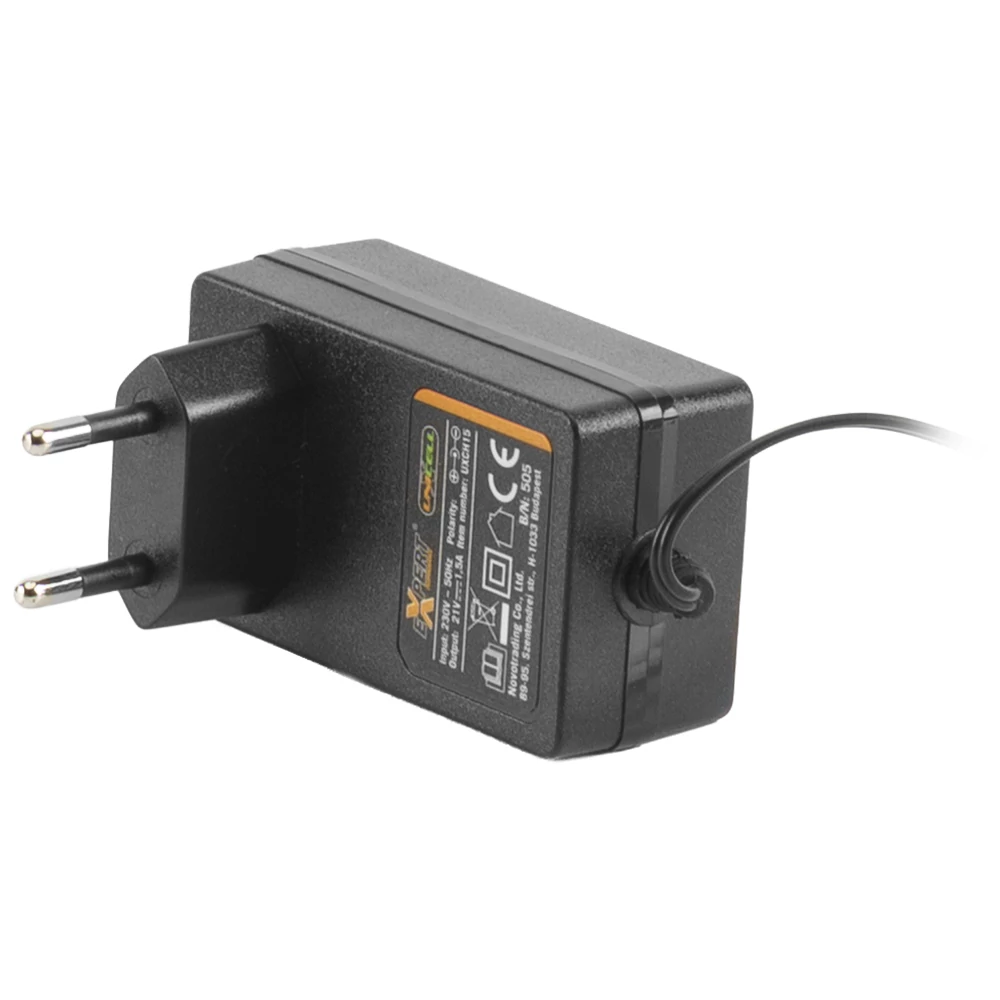 Expert UniCell akkumulátor töltő – Egyszerű, hatékony és kompakt töltési megoldásEz a 1,5A áramerősségű kábelcsatlakozós töltő (adapter) az UniCell akkumulátoros rendszer akkumulátorainak töltésére szolgál. A kompakt és könnyen kezelhető töltő ideális választás otthoni vagy helyszíni használatra, legyen szó akár barkácsolásról, karbantartásról vagy szerelési munkákról.A lengődugós töltő megbízható és biztonságos töltési ciklust biztosít, könnyen csatlakoztatható, gyorsan és praktikusan használható bármilyen szabványos fali aljzatban. A 1,5A-es kimeneti teljesítmény megfelelő töltési időt nyújt a mindennapi felhasználáshoz, miközben a túltöltés és túlmelegedés elleni védelem a biztonságos működést is garantálja.Főbb jellemzők:- 1,5A töltőáram – stabil és hatékony energiaellátás- plug-in adapteres kivitel – helytakarékos, könnyen hordozható megoldás- Kompakt méret – ideális akár szerszámosládában való tárolásra is- Túlfeszültség, túlmelegedés és rövidzárlat elleni védelemKompatibilis az Expert UniCell rendszerrel. Ez a töltő teljes mértékben kompatibilis az Expert UniCell rendszer akkumulátoraival. Az UniCell rendszer célja, hogy azonos csatlakozófelületű akkumulátorait többféle szerszámon használhasd – így ez a töltő megbízható energiaforrást biztosít minden UniCell akkumulátorhoz.A csatlakozó méreteit és kimeneti paramétereit figyelembe véve, UniCell rendszeren kívüli, további akkumulátorok töltésére is alkalmas lehet.Műszaki adatok:Bemeneti feszültség: 230V~50HzKimeneti feszültség: 21V DC Maximális töltőáram: 1,5ACsatlakozó típusa: hengeres lengődugó (0,5 × 3,0 mm)Kábel hossza: kb 1,8 mTöltési idők (közelítő értékek):▪ UX21ST15 – ~1 óra▪ UX21ST30 – ~2 óra▪ UX21PR20 – ~1,4 óra▪ UX21PR40 – ~2,7 óra